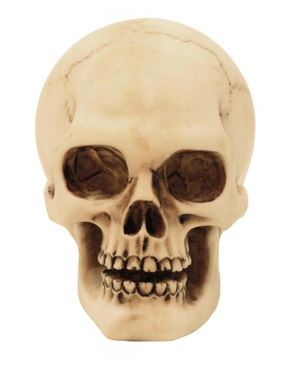 Das 2er Set Graveyard Totenschädel Medium besteht aus zwei Kunststein Totenköpfen. Sie bestehen aus handbemaltem Kunststein und sind detailliert ausgearbeitet. Kieferpartie, Augenhöhlen und Kerben sind dunkel bemalt, was noch realistischer wirkt. Ein Schädel ist ca. 10 x 11 cm groß. Für größere Schädel empfehlen wir den Realistischer Kunststein Totenkopf