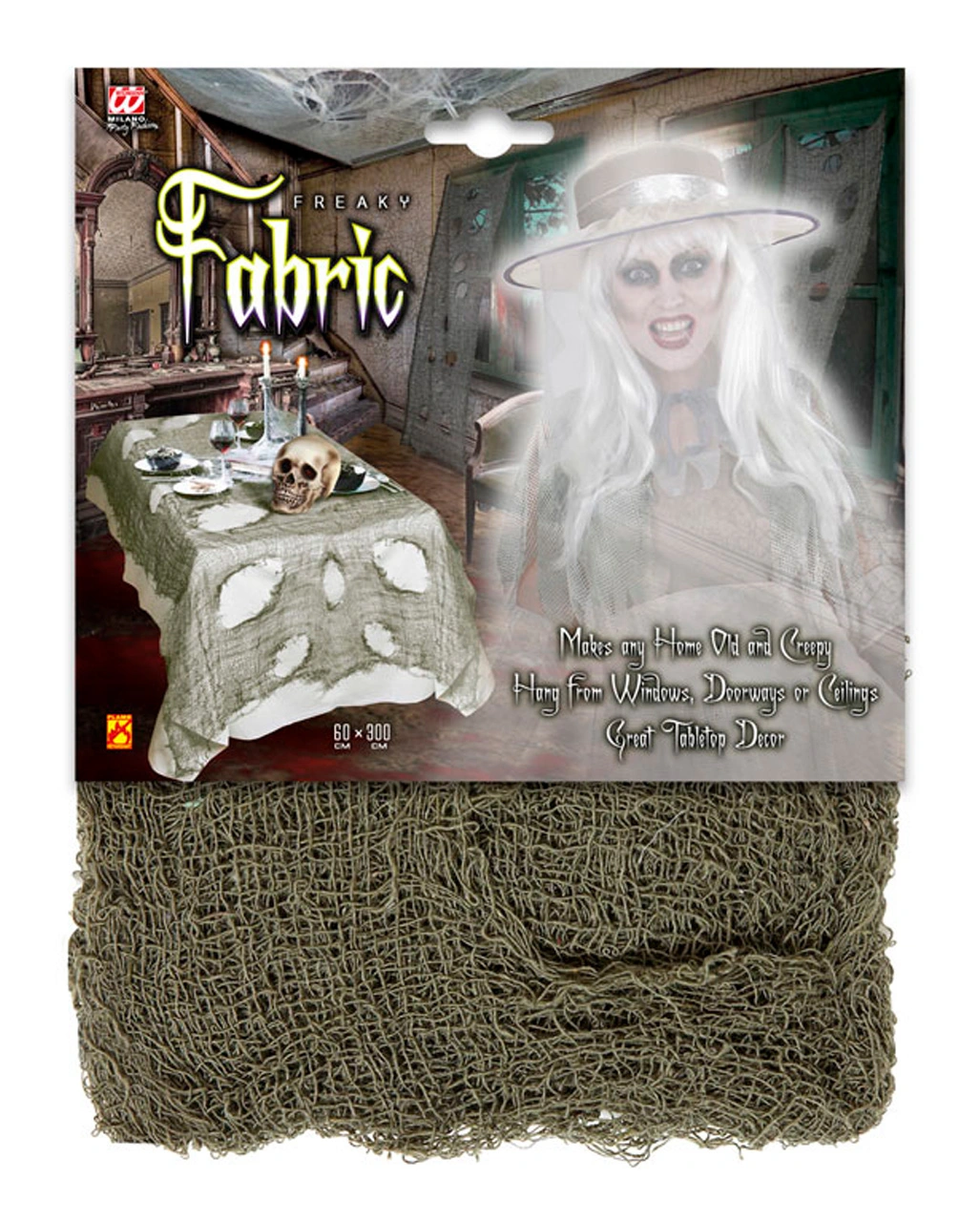 Der Halloween Lumpenstoff Grün ist ein locker gewebtes Tuch mit zerfetzter Optik. Du kannst den Gewebe Stoff als Halloween Wanddeko verwenden, aber auch als stimmungsvolle Tischdeko sieht der Vorhang mit Kerzen und Totenschädeln einfach gruselig aus. Der Halloween Lumpenstoff Grün ist ca 60 x 300 cm groß und schwer entflammbar. Entdecke auch unser Greaues Deko Netz und der Lampenschirm Überwurf aus schwarzer Spitze machen deinen Partykeller zum stimmungsvollen Blickfang.