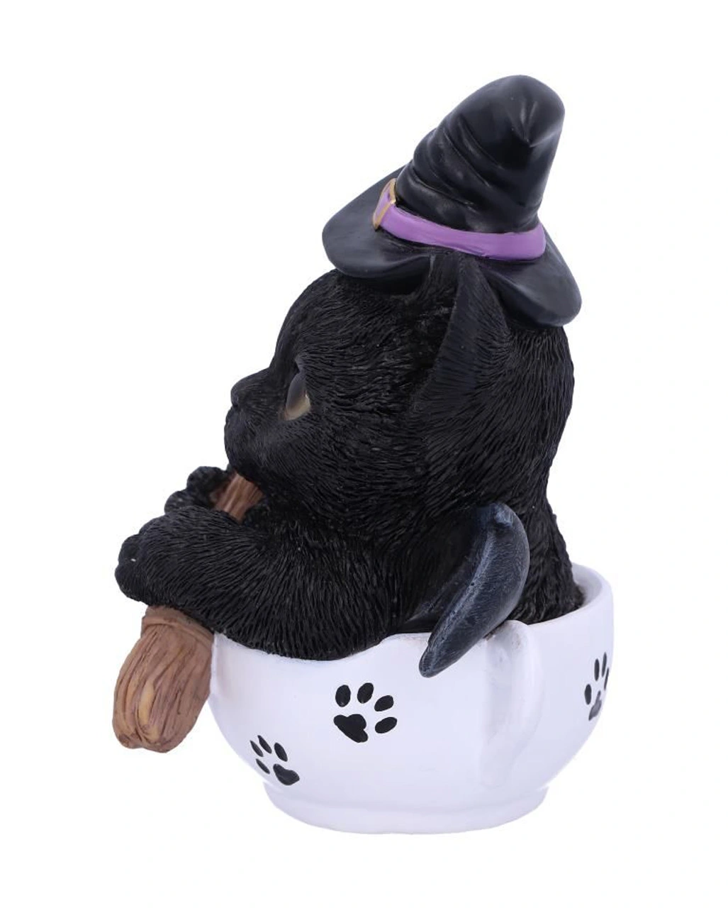 Lieferumfang: 1 x Schwarzes Hexen Kätzchen mit Hexenbesen in Teetasse