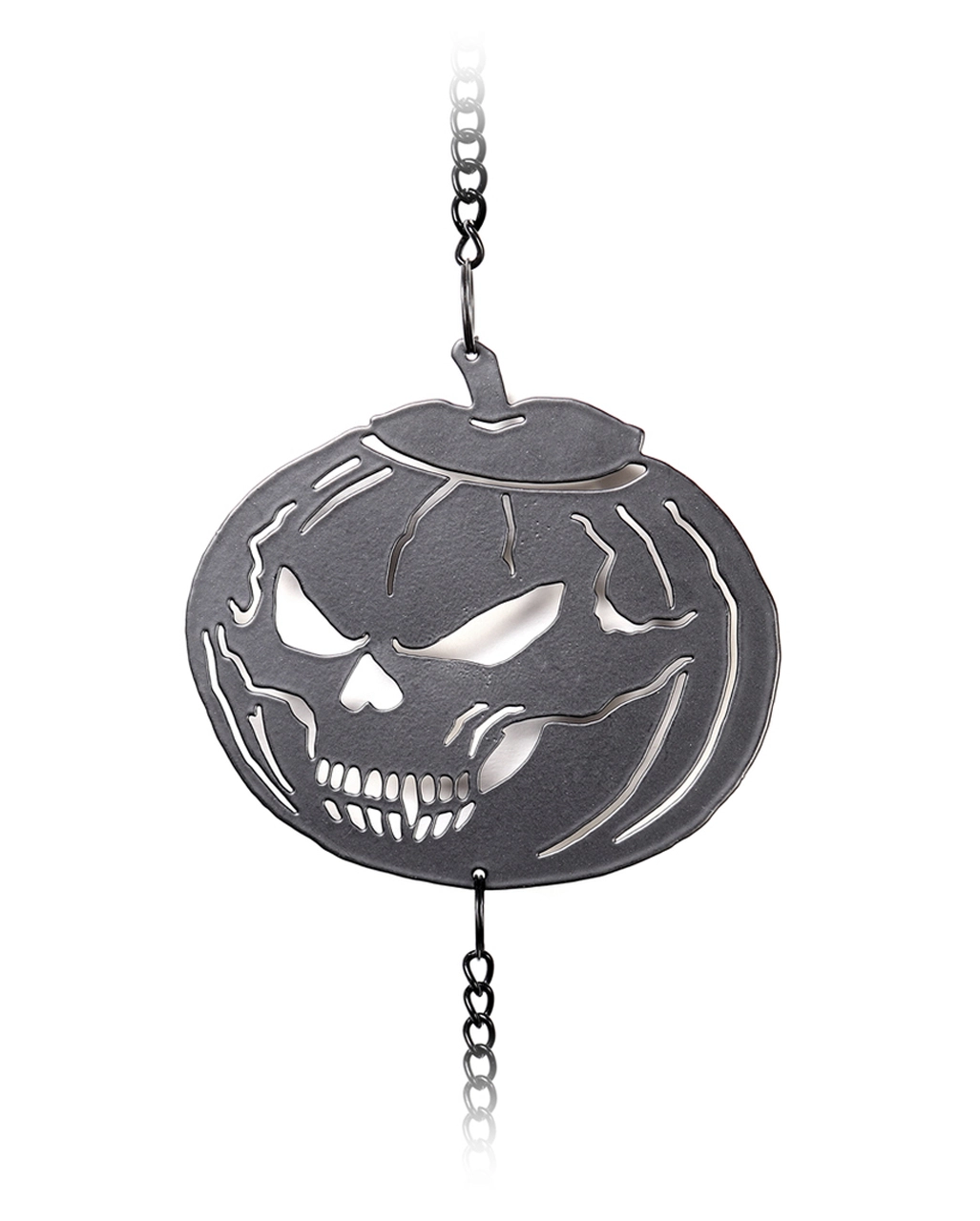 Unsere Totenschädel Kürbis Windspiel Hängedeko lässt sich dank des Hakens ganz einfach an der Decke oder Wand befestigen. Die matt-schwarze Legierung der Kürbisse sorgt für einen stylischen Look. Auch als Gothic Geschenkidee kann unser Pumpkin Mobile überzeugen. Entdecke auch das Glitzernde Halloween Hängedeko