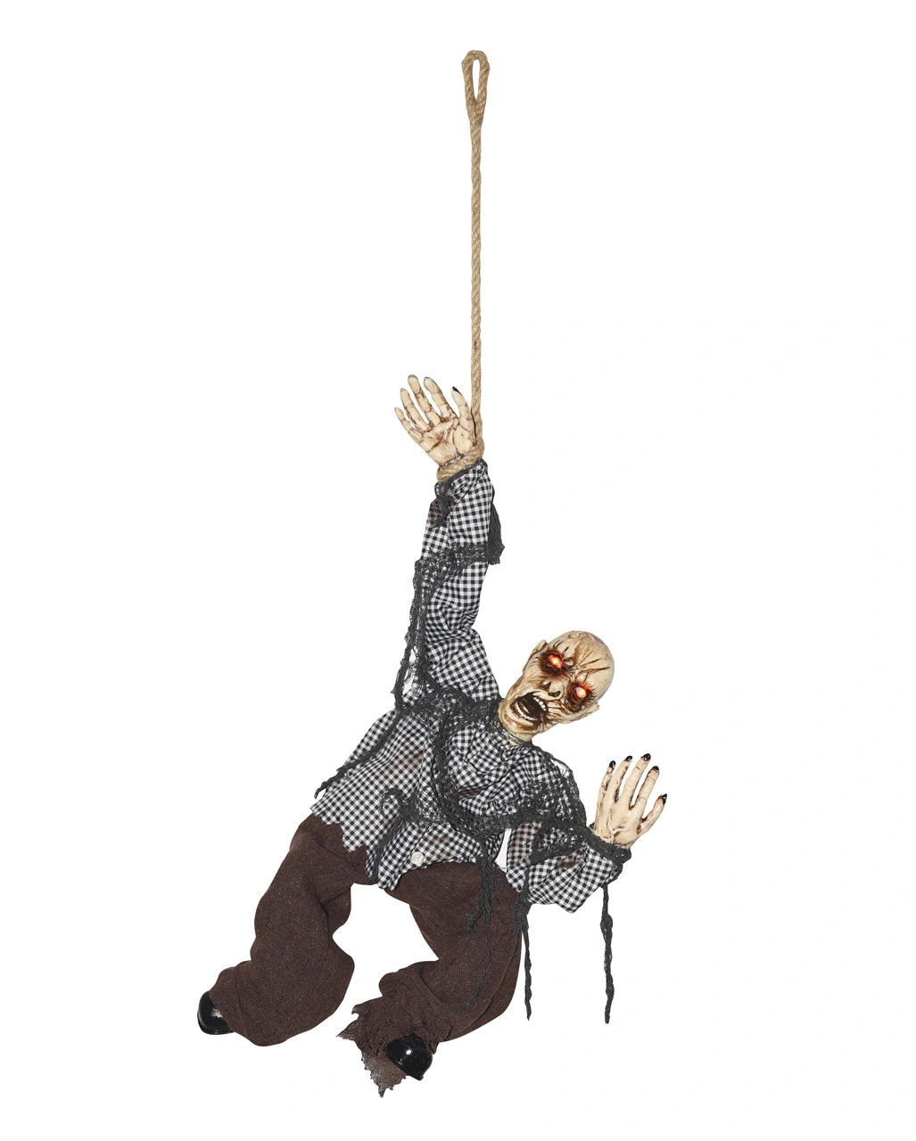 Lieferumfang: 1 x Zappelnder Zombie am Seil mit Licht & Ton